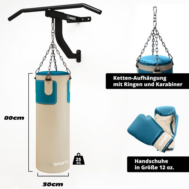 Boxzsák kiegészítőkkel bézs-kék edzőkészlet