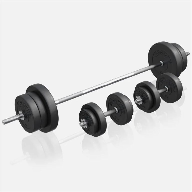A robusztus, 300 kg teherbírású konstrukció maximális stabilitást biztosít az edzés során. A szett gumibevonatú, cementkeverékből készült súlylemezeket is tartalmaz, amelyek védik a padlót. Ez a változat ideális szabadidős és igényesebb otthoni edzésekhez egyaránt.