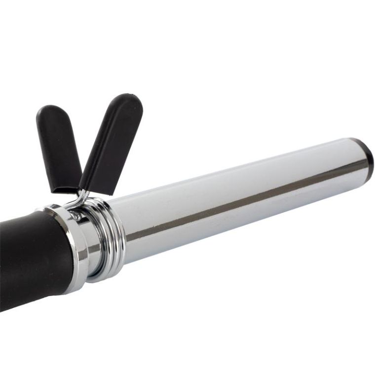 Erősítő rúd habos markolattal és rugós reteszekkel a biztonságos és kényelmes edzéshez.