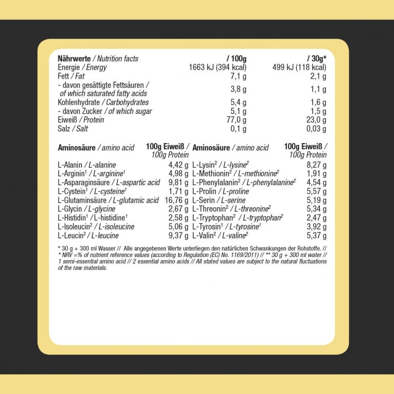 Ha gyakran és intenzíven edz, akkor fokozott energiaigénye van, ami általában nem elegendő a napi étrend fedezéséhez. Az izmok idővel történő felépítéséhez a testének elegendő fehérjére van szüksége az izom "építőköveinek" felépítéséhez. Ez egy erősen koncentrált fehérjepor vitaminokkal és édesítőszerekkel egy fehérjében gazdag hideg ital előállításához. Tejsavófehérje porunk körülbelül 23 gramm kiváló minőségű fehérjét biztosít Önnek egy adagban. Az, hogy edzés előtt vagy után fogyaszt-e fehérjét, személyes ízlésétől függ. Sokan jobban szeretik, ha nem kell "éhgyomorra" edzeni, míg mások a fehérjebevitelt használják az edzés utáni éhség megelőzésére. Mivel tejsavófehérjénk könnyen keverhető, így koktélokat is felvehet a napi edzésbe. Magas a BCAA-tartalma és más esszenciális aminosavak. Szobahőmérsékleten (21 ° C-ig), száraz helyen és napfénytől védve tárolandó.