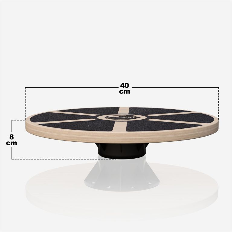 A 40 cm átmérőjű deszka fa kialakítása tartós és akár 180 kg-ot is elbír. A csúszásmentes felület biztonságos használatot biztosít még sima padlón is. 8 cm-es magasságának köszönhetően optimális mozgástartományt biztosít a mély stabilizáló rendszer erősítéséhez. Tökéletes otthoni edzéshez, rehabilitációhoz vagy fitneszközpontban végzett edzésprogram részeként.
