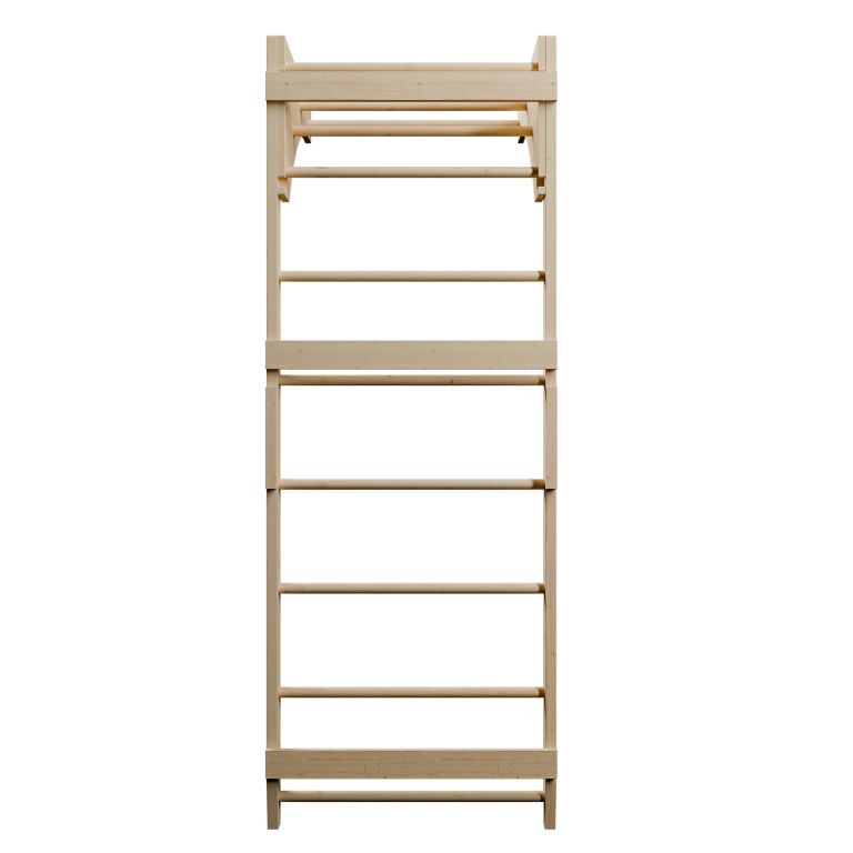 A rudak tartós bükkfából készültek, és 170 kg-os teherbírásuknak köszönhetően felnőttek is biztonságosan használhatják őket. A felső rúddal az edzési lehetőségek kiterjeszthetők fekvőtámaszokkal vagy függőgyakorlatokkal, így otthoni edzőtermedet egyetlen kompakt elemmel szerelheted fel. Egyszerűen rögzítsd a rudakat a falhoz, és olyan sportfelszerelést kapsz, amely hosszú éveken át szolgál majd téged és gyermekeidet.