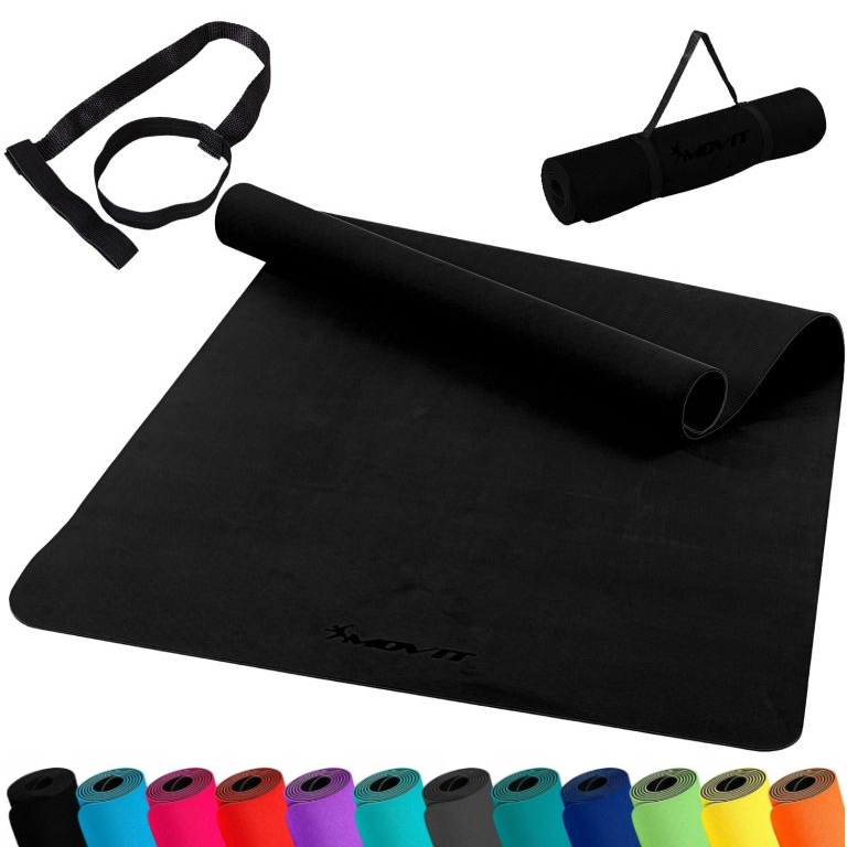 A nagyméretű MOVIT csúszásgátló szőnyeg kényelmet és stabilitást biztosít jóga, Pilates és fitnesz gyakorlatok során, valamint kíméletes az ízületekhe