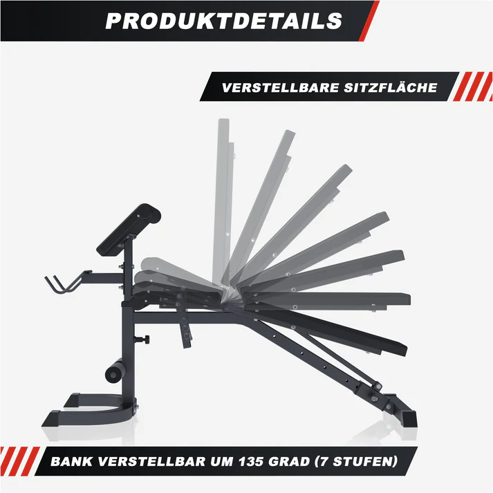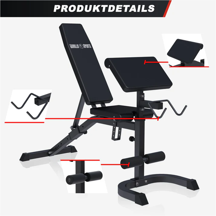 Ez az állítható Gorilla Sports pad curlpulttal ideális alapot nyújt az intenzív otthoni edzéshez. A 7 háttámla-pozíciónak és a 4 ülésbeállítási szintnek köszönhetően precíz alkalmazkodást tesz lehetővé minden gyakorlathoz - beleértve a hasizom edzést is a negatív dőlésszögű opciónak köszönhetően. A kifinomult kialakítás a masszív szerkezetet a kényelmes kárpitozással ötvözi, és támogatja a különböző izomcsoportok hatékony és biztonságos erősítését.