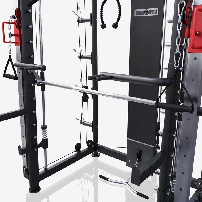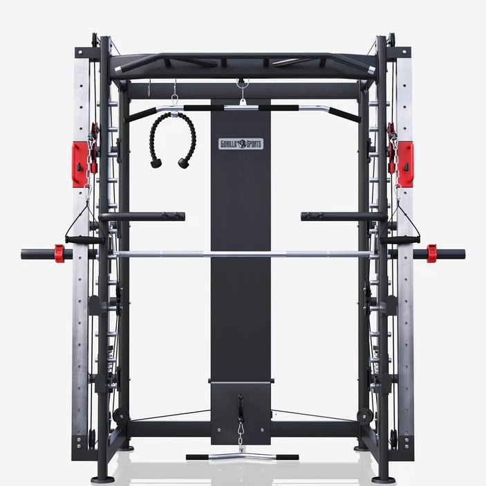 A Gorilla Sports egyik robosztus konstrukciója, egy szinte teljeskörű edzsét biztosító fitnesz eszköz.