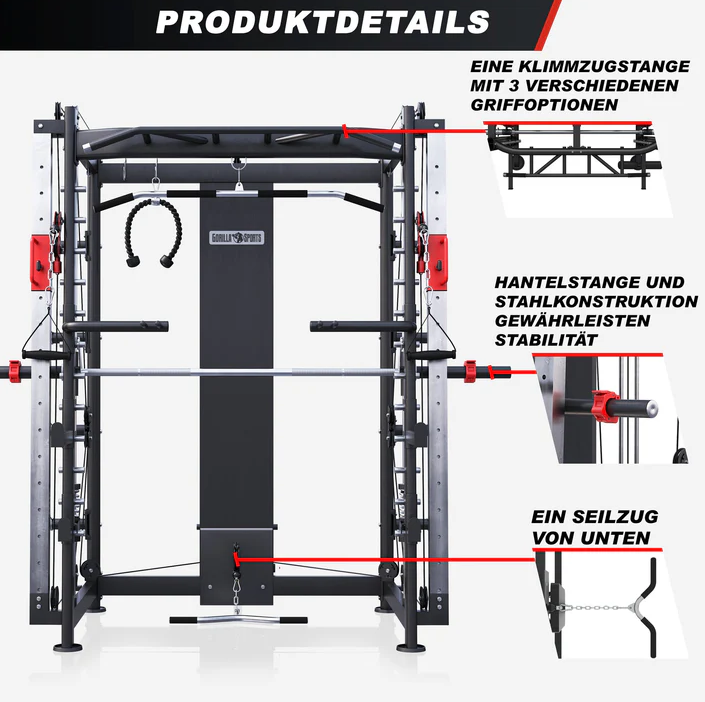 A részletesebb leírás megtekintéseA Gorilla Sports egyik robosztus konstrukciója, egy szinte teljeskörű edzsét biztosító fitnesz eszköz.