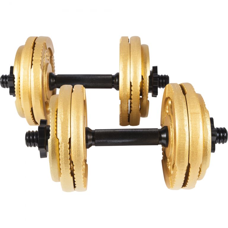 A készlet maximum 30 kg össztömegből áll, amelyet súlyzókra oszthatsz. A lemezek porszórtak és fogantyúk. A korongokat más gyakorlatokhoz is használhatja. Legyen szó billencsről vagy speciális vállgyakorlatokról a markolatokkal mindent kézben tarthat. A kerekek és a súlyzók anyaga tömör öntöttvasból készült és a súlyokkal együtt megfelelő hangulatot teremt.