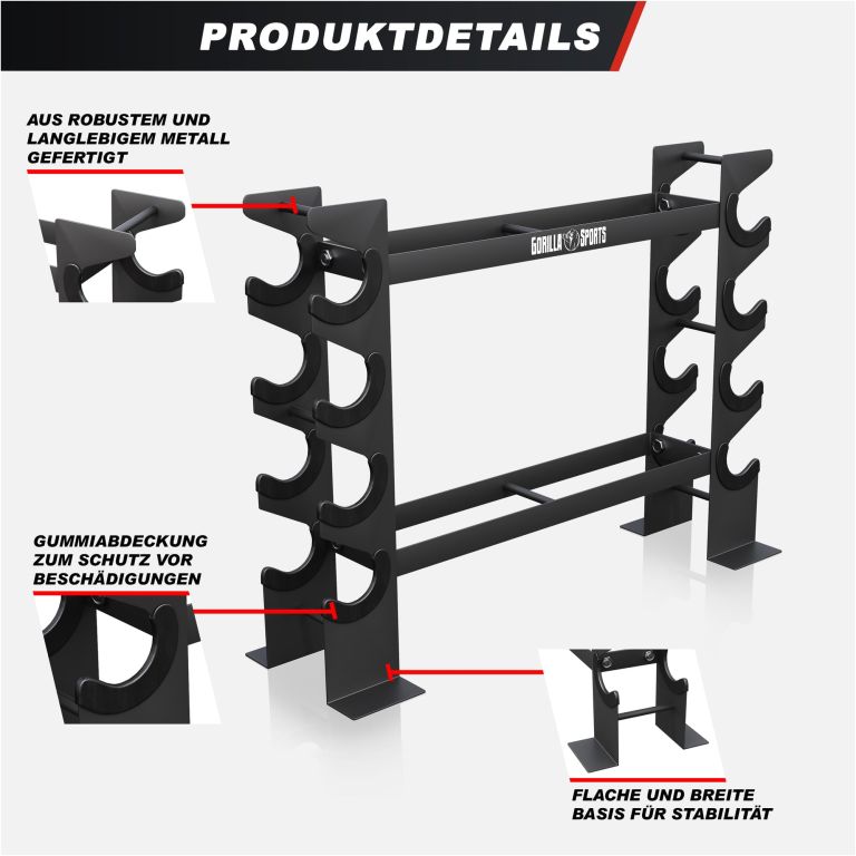 Végre rendet rakhat a tornatermében. A Gorilla Sports súlyzóállvány 8 polccal két szinten segít biztonságosan és áttekinthetően tárolni minden típusú egykezes súlyzót. Az elegáns és kompakt kialakítás minimális helyet foglal, így tökéletesen illeszkedik a kisebb otthoni edzőtermekbe is. Ezenkívül hozzájárul a biztonság növeléséhez nincsenek súlyzók a földön, minden a helyén van és mindig kéznél.