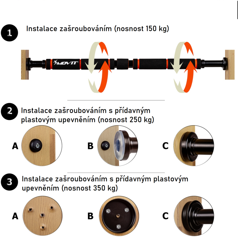 A húzódzkodó MOVIT® rúd remek segédeszköz otthoni edzéshez.