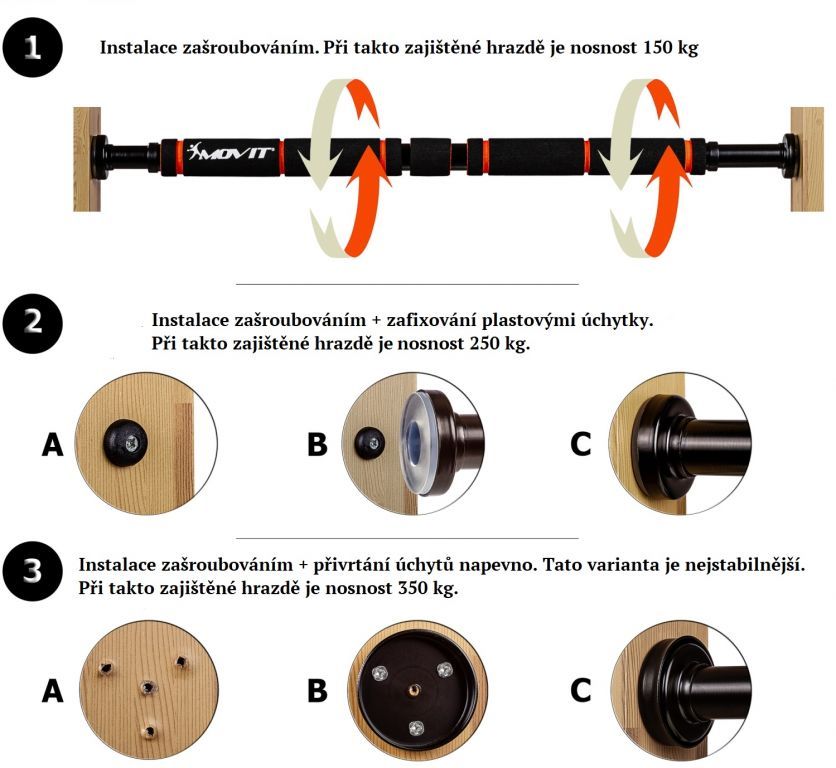 Gyakoroljon otthon és útközben is. Az állítható hosszúságnak és az egyszerű rögzítésnek köszönhetően bárhol edzhet, csak csavarmenettel kell biztonságosan rögzíteni a felső vagy alsó ajtó részéhez, attól függően, hogy melyik testrészt szeretné edzeni. Egyetlen edzőeszközzel hatékonyan erősítheti a hátizmokat, a karokat és a hasizmokat is. A hrazdát a csomagban található csavarokkal is rögzítheti. A rúd teljes szélességén elhelyezett habszivacs markolatok kényelmes edzést biztosítanak.
