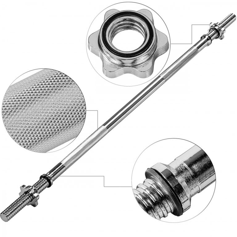 A csillagzárak megakadályozzák a súlyzótárcsák kellemetlen zörgését. Annak érdekében, hogy a kezek ne csússzanak edzés közben, a fogási pontok a keresztrúdú rúdon vannak. A súlyzónak két elpusztíthatatlan trapézszála van ez a legbiztonságosabb módja a súlyok rögzítésének. A 30 mm átmérőjű hosszú rúd szabványos méretű, ami biztosítja, hogy minden kereskedelmi forgalomban kapható mérleg biztonságosan rögzíthető legyen.