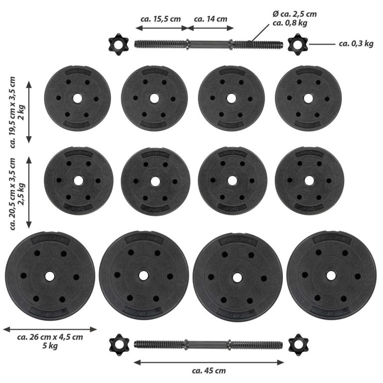 Azok számára, akik szeretnének edzésben maradni, valamint megtakarítani a felesleges kiadásait az edzőtermekkel szemben. Alkalmas nem csak bicepsz és tricepsz, hanem hát és hasizomzat erősítéséhez is. A négycsillagos zárak megbízhatóan rögzítik a súlyt. A keresztbe recézett fogantyúk támogatják a biztonságot az erőnléti edzés során. Ez lehetővé teszi a2x 20 kg súlyzósúlyt, amelyet a személyes edzésszintjének megfelelően módosíthat.
