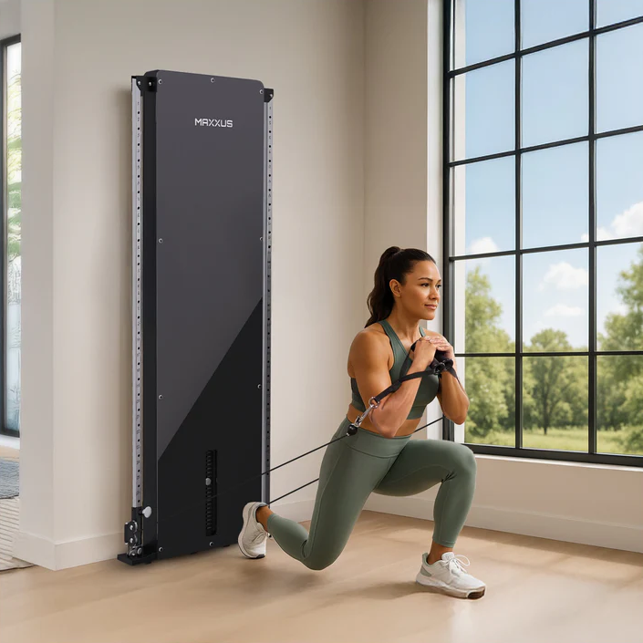 A MAXXUS márka SmartGym H8 egy kompakt edzőállomás, amely teljes értékű erősítő edzést kínál még akkor is, ha nincs sok hely. Mindössze 14,3 cm mélységének köszönhetően szinte minden fal mellé elfér, mégis több mint két tucat gyakorlatot tesz lehetővé a 26 kötélmagassági pozíciójának köszönhetően. Az 50 kg-os súlyblokk 2,5 kg-os lépésekben könnyen beállítható, így kezdőknek és haladóknak egyaránt alkalmas.