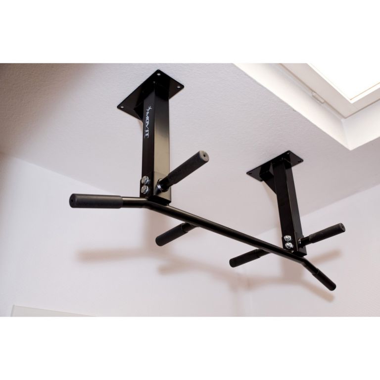 Ezzel a professzionális MOVIT® hrazdával számos különböző gyakorlatot végezhet, amelyek erősítik a karokat, a lábakat, a hátat, a mellkast és a hasizmokat. A három különböző típusú fogantyú több izomcsoportot terhel, és változatos edzést tesz lehetővé. Ezenkívül a 4 fogantyú habszivacsos párnázattal van bevonva. Rendkívül stabil négyzetes acélszerkezet, amely 8 csavarral szilárdan rögzíthető a mennyezethez. Maximális terhelhetőség: 350 kg! Így könnyű és kényelmes az otthoni edzés.