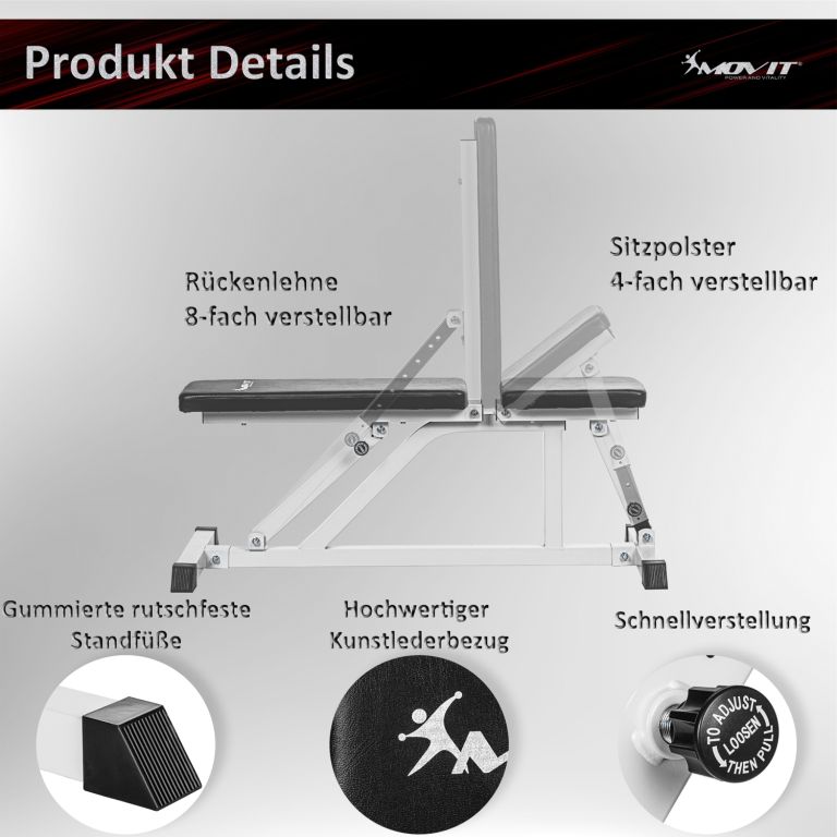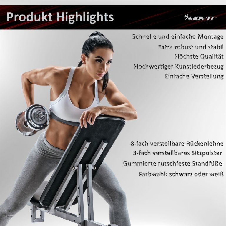 Ennek a súlyzópadnak a nagy előnye a háttámla és az ülés állíthatósága. Fekve vagy ülve nem csak nagy izomcsoportokat, hanem gyakran elhanyagolt segédizmokat is gyakorolhat. Stabil acélszerkezete és masszív állványa ideális körülményeket biztosít edzései számára. Kis méretének köszönhetően könnyedén elhelyezheti otthoni edzőtermében, és hatékony és sokoldalú gyakorlatokat végezhet az egész testre.