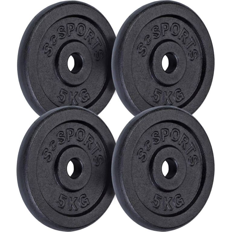 4 darabos, egyenként 5 kg súlyú öntöttvas súlyzókészlet edzéshez. Tartós, sokoldalú és minden típusú súlyzóhoz alkalmas.
