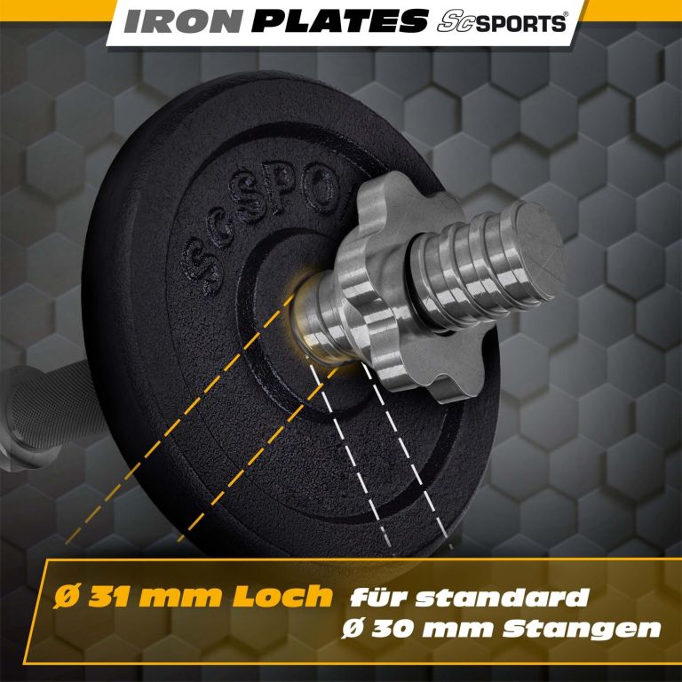 Fedezze fel az erőt és a stabilitást ezzel a ScSPORTS öntöttvas súlytárcsás készlettel, amely új szintre emeli otthoni edzéseit. Ideális nők és férfiak számára, akik bővíteni szeretnék edzési lehetőségeiket, és otthon szeretnék létrehozni saját edzőtermüket. A készlet kezdőknek és haladó felhasználóknak egyaránt alkalmas, akik megbízható és tartós felszerelést keresnek a mindennapi edzéshez.
