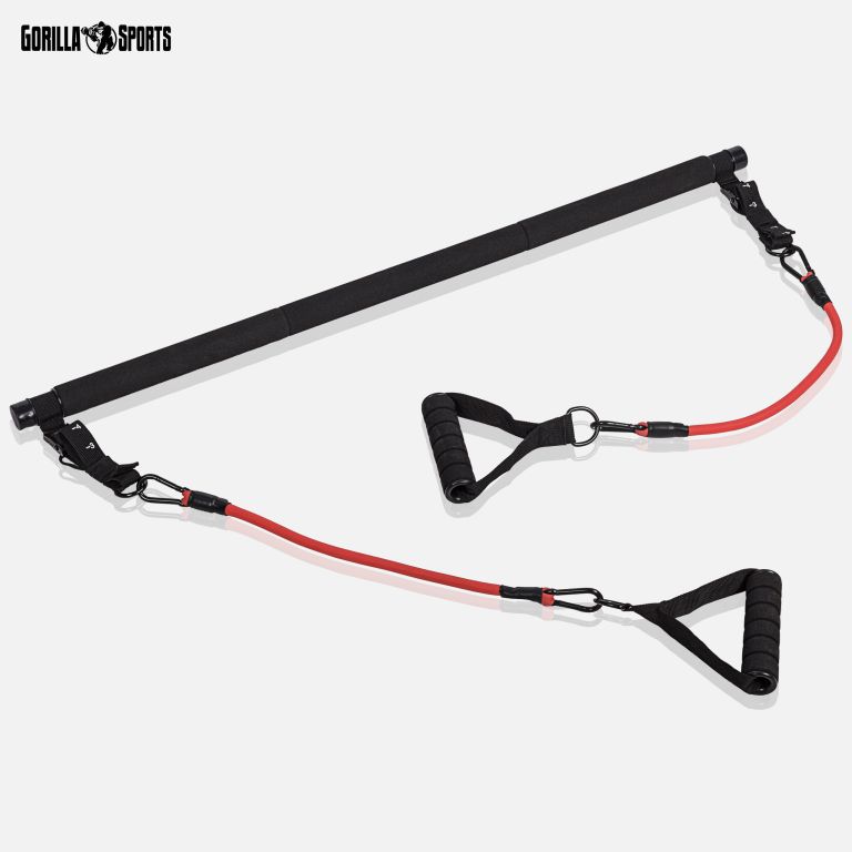 Univerzális pilates szett három ellenállási szinttel, hordtáskával és állítható rúddal tökéletes otthoni és utazó edzésekhez.