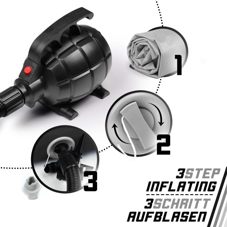 Könnyű felfújás - elektromos pumpa tartozék a gyors előkészítéshez.