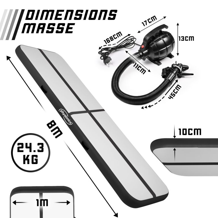 Physionics Airtrack felfújható szőnyeg 8 m fekete