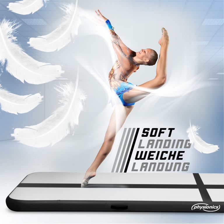 A szőnyeg tartós, dupla falú PVC ponyvából készült, amely intenzív használat esetén is szilárdságot és stabilitást biztosít. 10 cm-es vastagságának köszönhetően ideális a biztonságos landolásokhoz és ugrásokhoz. Könnyű összeszerelés elektromos pumpával, egyszerű karbantartás és hosszú élettartam mindezt minden sportoló értékelni fogja.