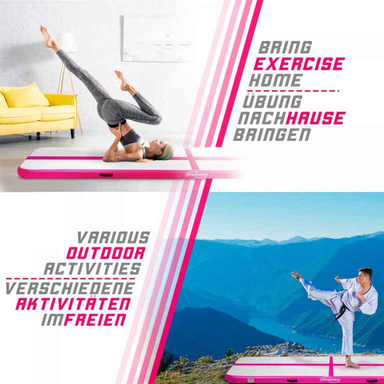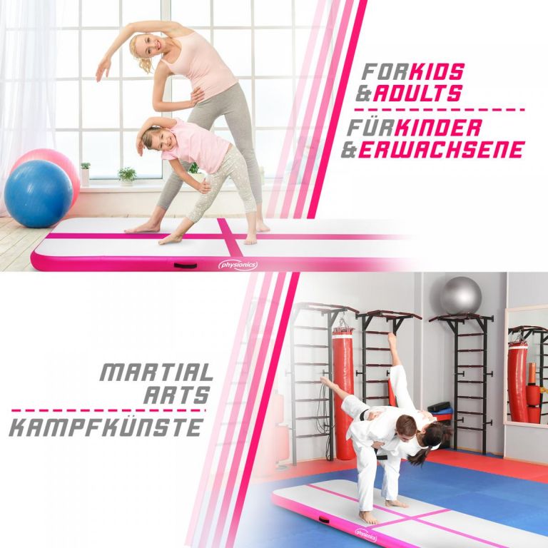 PHYSIONICS Airtrack felfújható szőnyeg 8 m rózsaszín