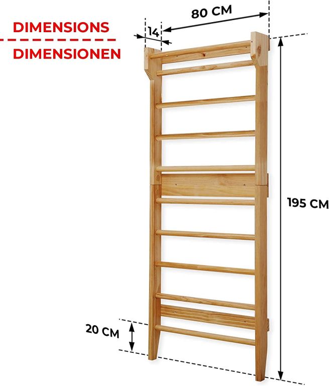 Akár tornázik, jógázik, fitneszezik, vagy csak fitten tartja magát, ezek a létrák remek választásnak bizonyulnak. Javítani fogják az erődet, a rugalmasságodat és a koordinációdat. A létrák ideálisak az otthoni edzésekhez, valamint az iskolai vagy egyetemi tornatermek felszereléséhez. Még fizikoterápiás foglalkozásokhoz is használhatók minden korosztály számára. A létrák kiváló minőségű fenyőfából készülnek, és nedvességálló lakkal vannak kezelve. A létrák számos gyakorlathoz használhatók - a túlnyúló rúddal súlyemelést és függőgyakorlatokat végezhet, míg a normál rudak mászásra és számos más gyakorlatra használhatók. Használhatók terápiás és egészségügyi gyakorlatokhoz is a hátfájás és más betegségek enyhítésére.
