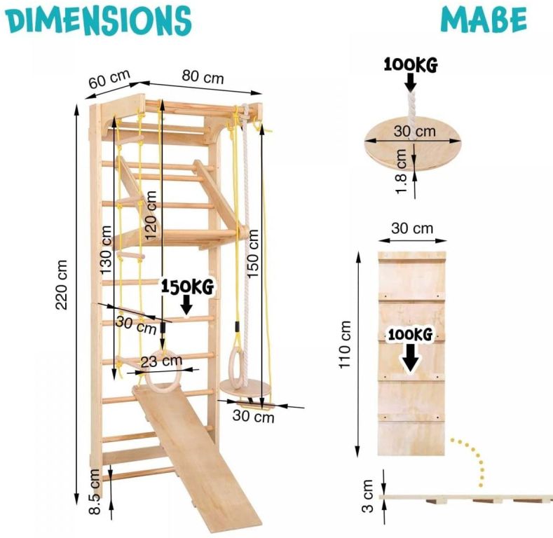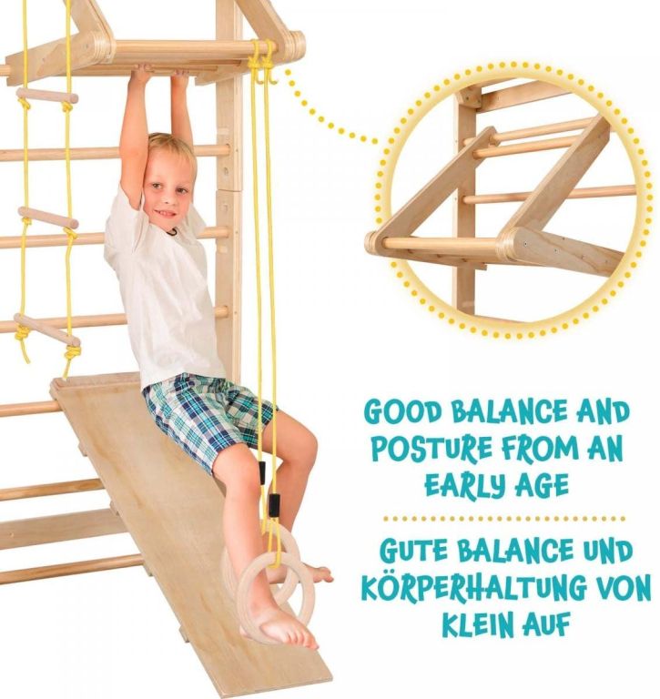 kiegészítőkkel ellátott létra egy edzőállomás, amely gyermekek és felnőttek számára egyaránt alkalmas. A készlet 3 éves kortól alkalmas gyermekek számára, felnőttek állandó felügyelete mellett. A létrák ideálisak otthoni, iskolai és fitneszstúdió használatra. Akár fizioterápiás kezelések segédeszközeként is használható.