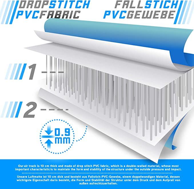 Edzőszőnyegünk 10 cm vastag, és PVC ponyva, egy duplafalú anyagból készül, amelynek fő jellemzője, hogy külső nyomás és ütés hatására is megőrzi a szerkezet alakját és stabilitását. Ez a párna elektromos légpumpával és javítókészlettel van felszerelve. Alkalmas különböző beltéri és kültéri sportokhoz.