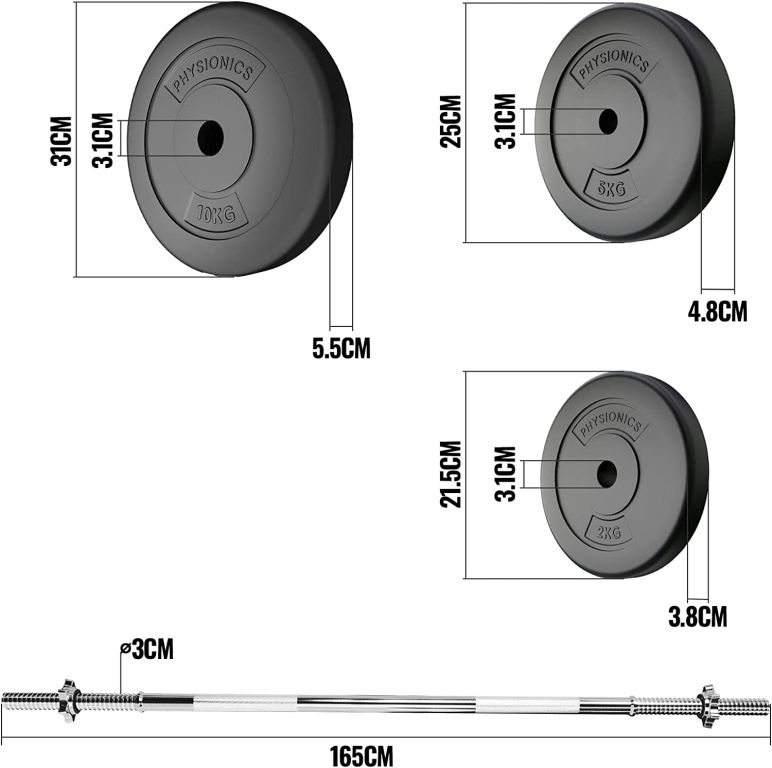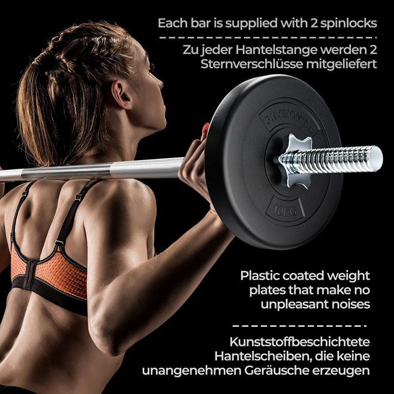 PHYSIONICS Súlyemelő készlet tárcsákkal 165 cm 60 kg