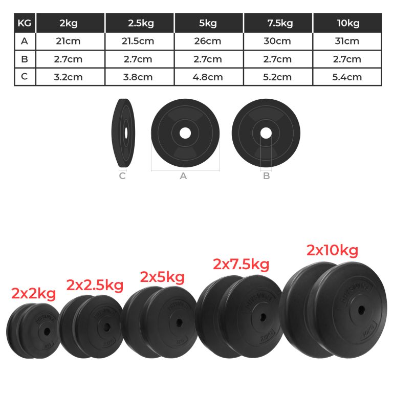 Az otthoni edzés rugalmasságot biztosít, hogy bármikor gyakorolhasson, amikor csak kedve tartja. Ezzel a súlyzótányérkészlettel (mindegyik súlya 5 kg) edzhet saját fitness céljainak megfelelően. A súlylyuk átmérője 27 milliméter. A lemezek robusztus műanyag burkolattal rendelkeznek, ami csendessé teszi őket. A padlója is védett lesz. Vegye figyelembe egyéni igényeit és képességeit, és ennek megfelelően alakítsa ki edzéseit. Mi az oka az edzésnek? Jó érzés? Szeretnél szebb alakod lenni? Szeretnél több izmot vagy fogyni? Készítse el saját fitness edzését, és mi mindent megadunk, amire szüksége van. Az ajánlat tartalmazza a megfelelő botokat és egyéb kiegészítőket, amelyeket ezekhez a korongokhoz illeszthet.