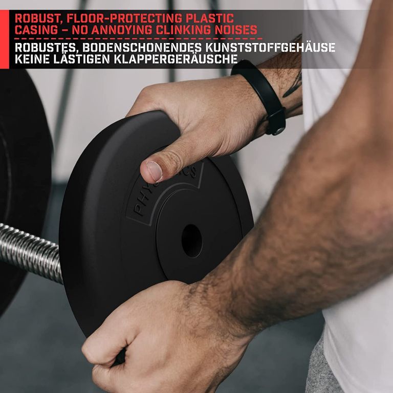 A súlyzólemezek egy megfelelő erőrúddal együtt lehetővé teszik a felső és alsó testet formáló különböző erőgyakorlatok elvégzését. A teherlemezek furatátmérője 31 mm, ami a legtöbb súlyzóhoz megfelelő. A súlyok tartós padlóbiztos műanyaggal vannak bevonva, amely csökkenti a fém zörgését.