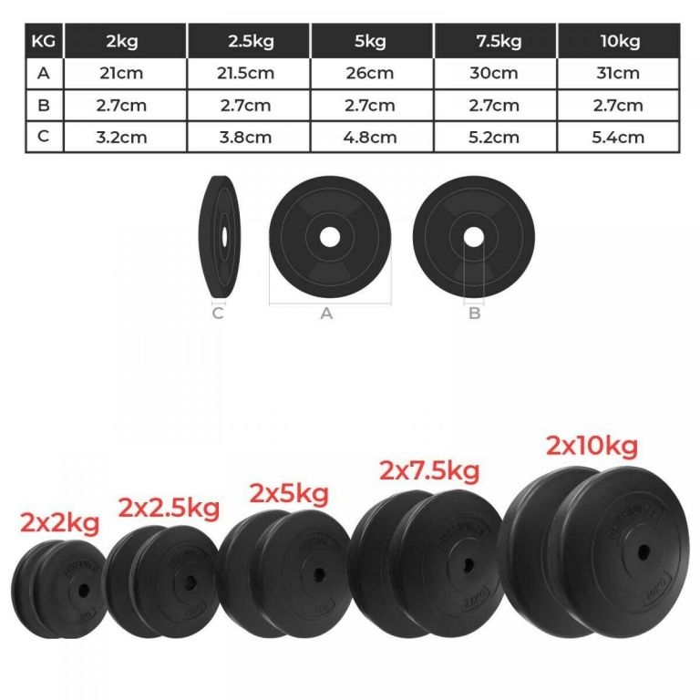 Az otthoni edzés szabadságot ad, hogy akkor edzhessen, amikor és ahogy akar. Ezzel a 2 súlyzókészlettel addig edzhet, amíg el nem éri saját fitneszcéljait. A lemezek műanyag felülettel vannak ellátva, amely gyengéd a padlóhoz. Vegye figyelembe egyéni igényeit és képességeit, és ennek megfelelően alakítsa át edzését. Mi az oka az edzésnek? Jó érzés? Szeretnél szebb alakod lenni? Több izmot szeretnél gyarapítani vagy fogyni? Állítsa össze saját fitness edzését, és mi mindennel felszereljük, amire szüksége van. A menüben megtalálja a megfelelő rudakat és egyéb kiegészítőket, amelyeket ezekhez a lemezekhez illeszthet.