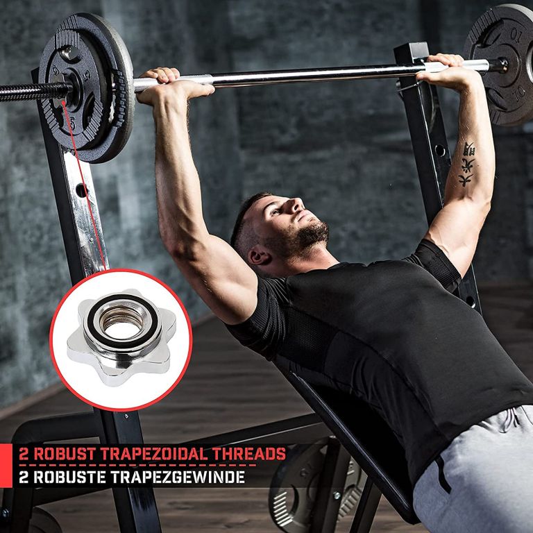 Az erősítő rúd maximum 300 kg-os tárcsák terhelését teszi lehetővé, amelyek csillagzárakkal szorosan záródnak. Az emelőrúd minden szabványos 30/31 mm-es tárcsához alkalmas. A fitneszléc két 20 cm-es fogantyúja csúszásmentes felülettel rendelkezik, ami biztosítja, hogy a kezek ne csússzanak le a rúdról.