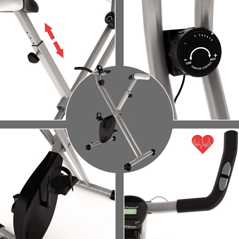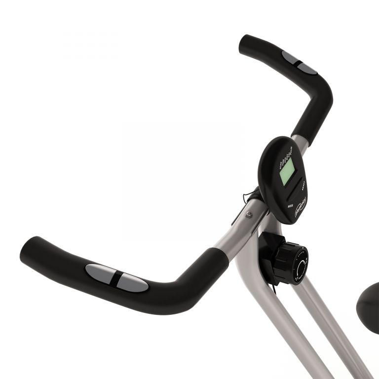 Szobakerékpárunk megkönnyíti az egészséges életmódot. Ez a fitness kerékpár javítja fizikai állóképességét, erősíti az izmokat és javítja általános közérzetét. Kompakt méretei (42,5 x 77 x 115 cm) mellett, amelyek ideálisak a kis helyeken való élethez, ez a fitneszkerékpár könnyen összecsukható és tárolható. A nyolc irányban állítható ellenállású edzőkerékpár hatékony állóképességi edzést tesz lehetővé akár 120 kg-os maximális súlyú felhasználók számára. A fitneszkerékpár ülése hat különböző magasságba állítható. A szobakerékpár LCD számítógépes kijelzője figyeli az időt, a sebességet, a távolságot, a pulzust és a kalóriákat (2 db AA elem nem tartozék).