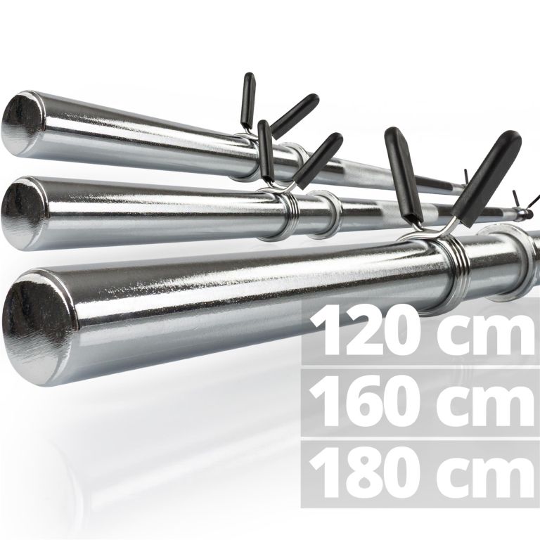 Univerzális súlyzó rúd 180 cm, ideális otthoni és professzionális edzéshez. Teherbírás 150 kg, záróelemekkel együtt.