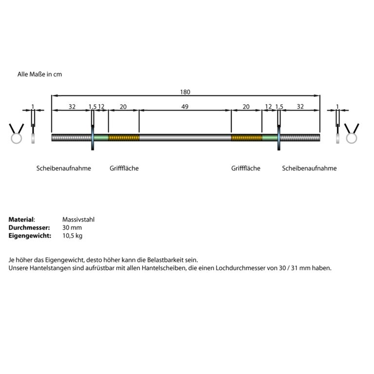 Súlyzórúd 180 cm 30 mm biztonsági záróelemekkel